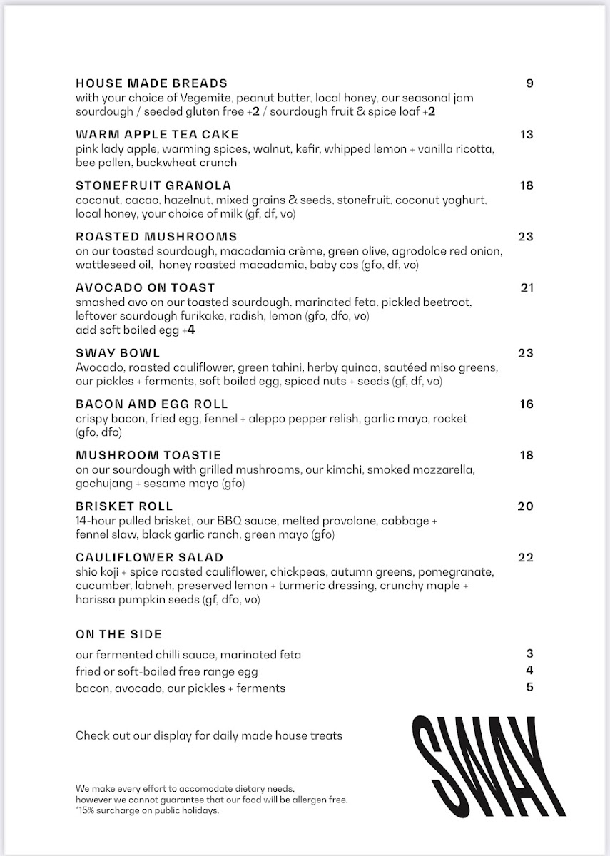 Welcome to Sway - 1/13 The Corso, a culinary gem nestled in Manly, Australia. This delightful café invites you to explore a menu that merges comfort with creativity. Each dish is thoughtfully crafted, showcasing their commitment to fresh, house-made ingredients.